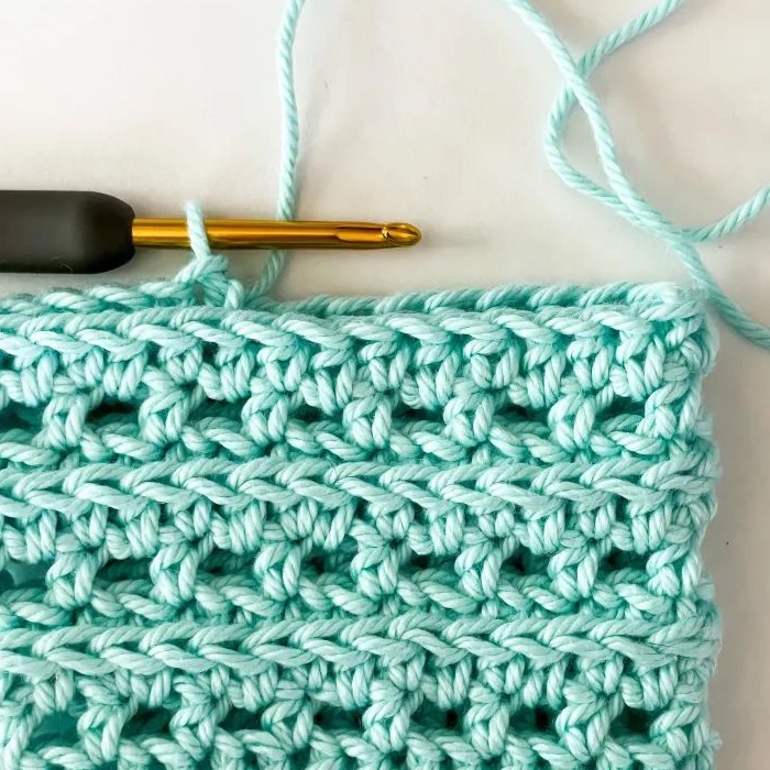 – sc3lo – the third loop can be found on the back side of the hdc you are working into. By sc in the third loop you are pushing the two bars, that you normally work through, forward to create a sideways looking knit stitch. If you’d like a visual of the stitch being work check out my reel on Instagram.