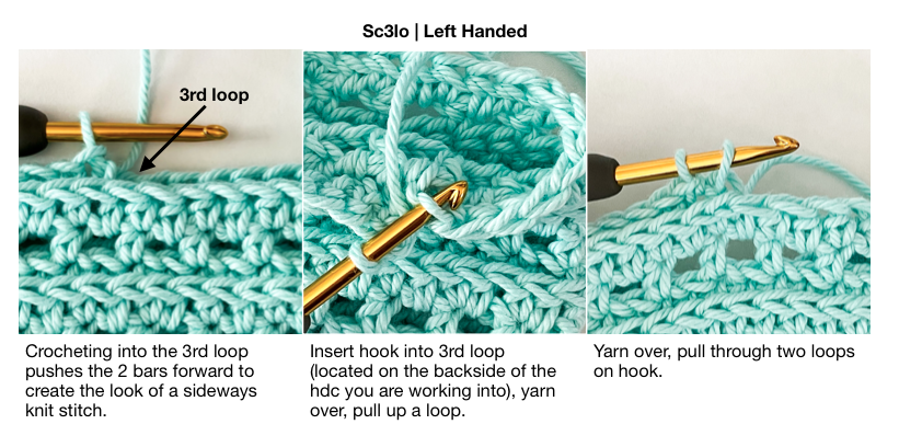 – There will be a gap between the first and last stitch of the first row, use the tail to seam together when finished.