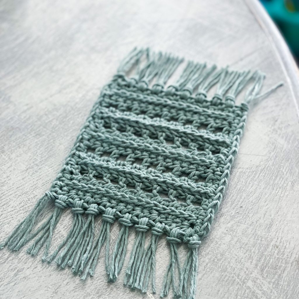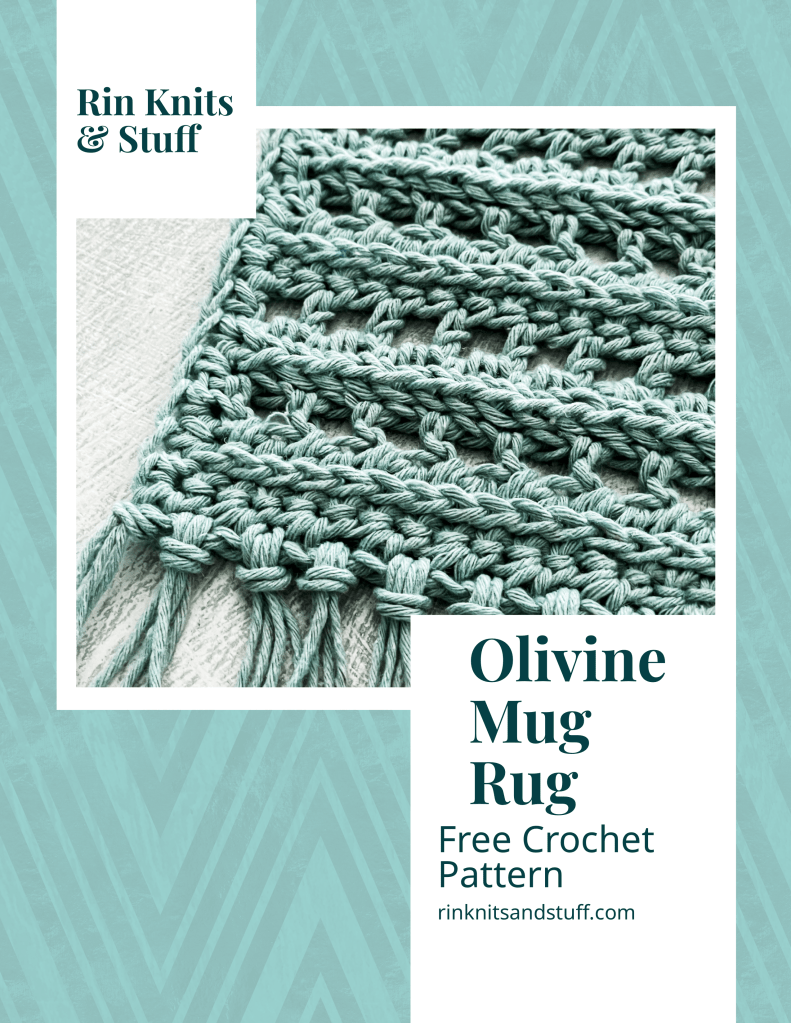 Next in the Olivine Collection is a mug rug! It worked similarly to the other patterns in the collection but is worked flat instead of in the round. Working the SC3LO is a little different so I have provided some tutorial photos. I don’t have anything else to say, so let’s get to it.