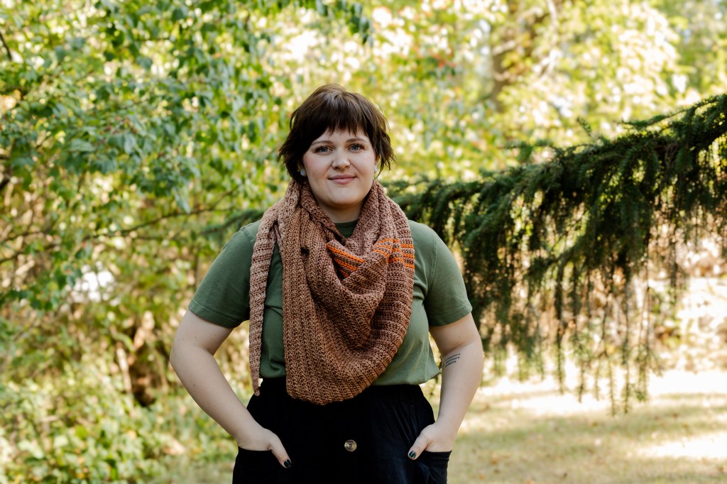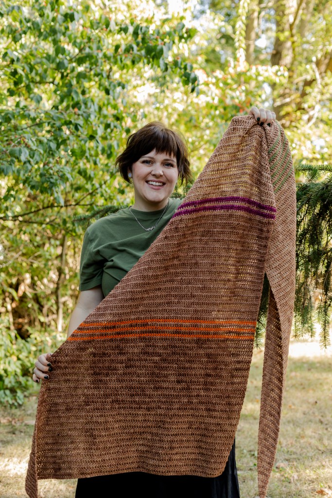 The Emeline Shawl is an asymmetrical shawl that I created in search for an easy to remember project using one of my favorite stitches, the Forked Cluster, that made good use of some yarn I hand dyed.